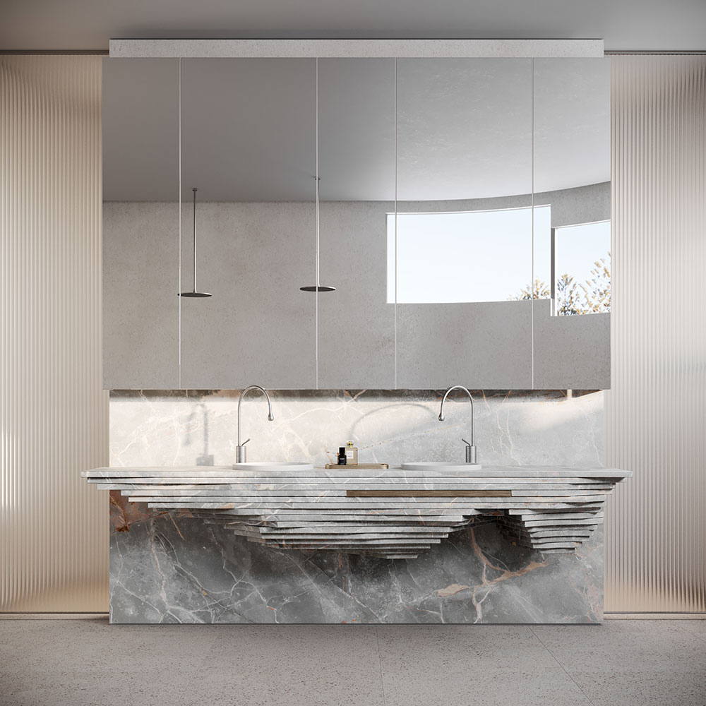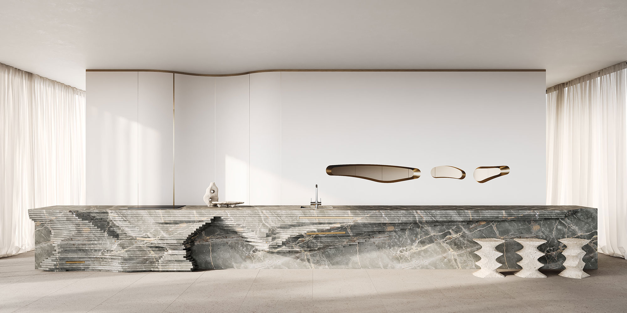 Every aspect of Glasshouse is a triumph - from the breathtaking individuality of living environments to the authenticity of stone materials and the skill of the artisans' craft. Sculptural island benches and bathroom vanities forged in the finest Italian stone serve both in function and statement.